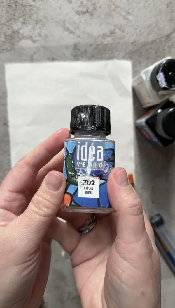 Glass paints tend to be dense and highly pigmented, so I mixed mine with a matching thinner from the same range. This lightens the colour, makes it flow more freely, and helps create those delicate, almost translucent watercolour layers.