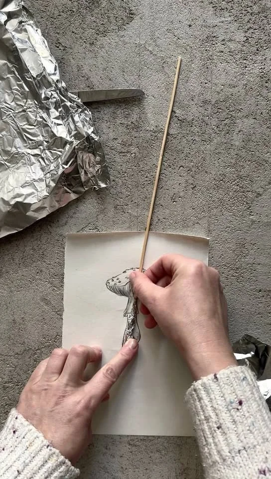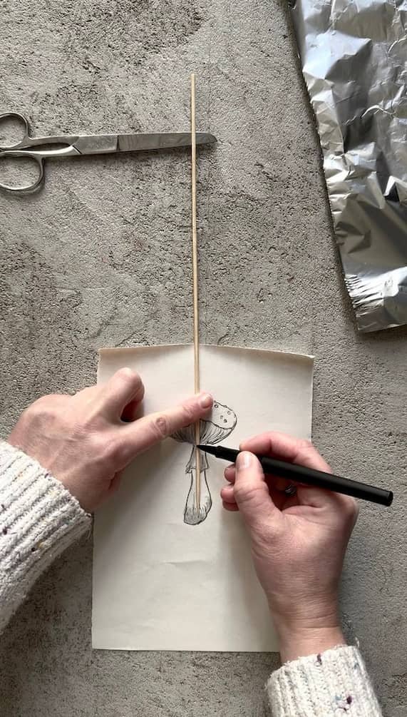 Place a wooden skewer over your sketch and decide how tall the mushroom stem should be.