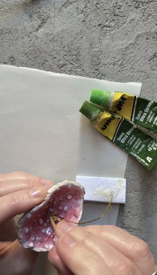 In the logical order of steps, glitter should actually come before attaching the string — but I did it the other way around. Here, however, I’m presenting everything in a clean, easy-to-follow sequence.