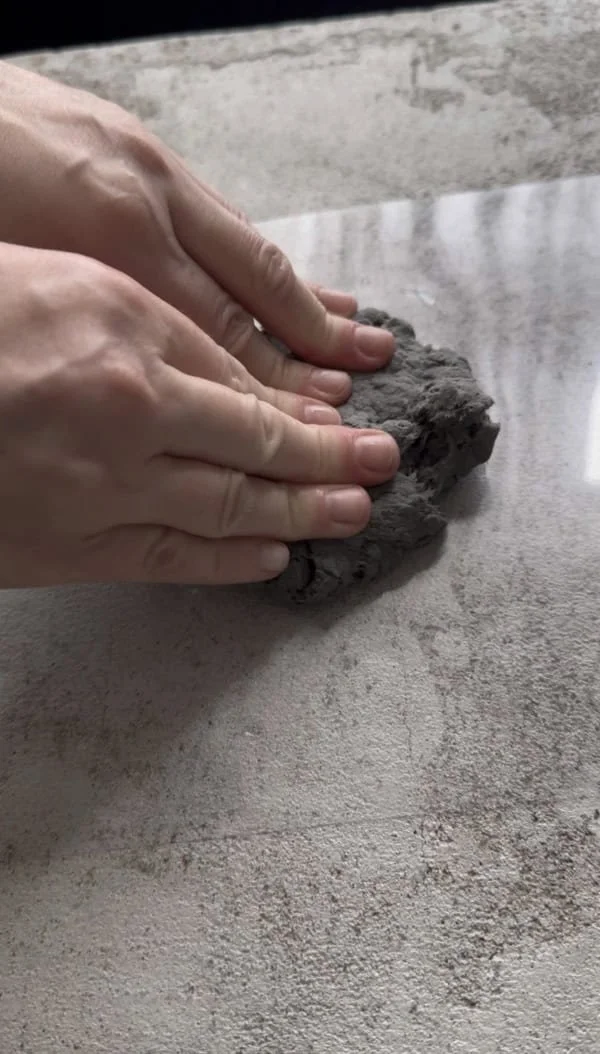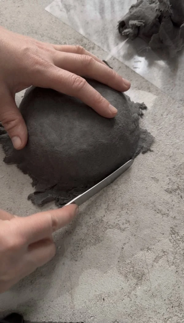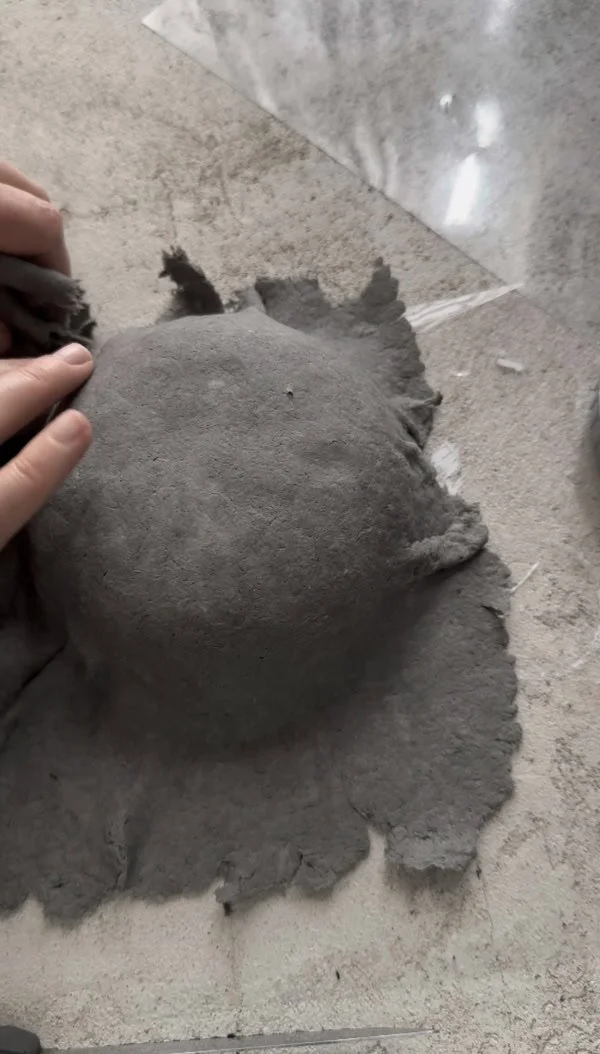 Don’t worry if you notice any small holes or gaps. You can easily add a thin piece of pulp (using the parts you tore off earlier), press it onto the surface, and blend it in with the knife. The material is very flexible and easy to shape, making it simple to create a smooth, seamless look.