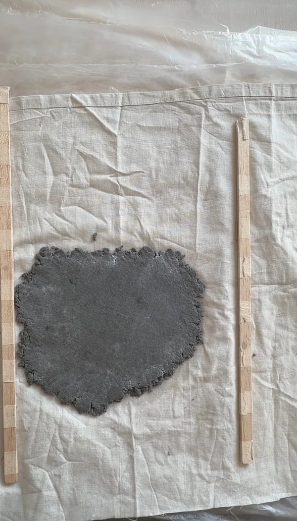 When working with larger pieces of paper pulp, I often use guides to control the thickness and keep everything even. The problem is that a standard rolling pin is usually too short to rest on them properly, which makes the process harder to control.